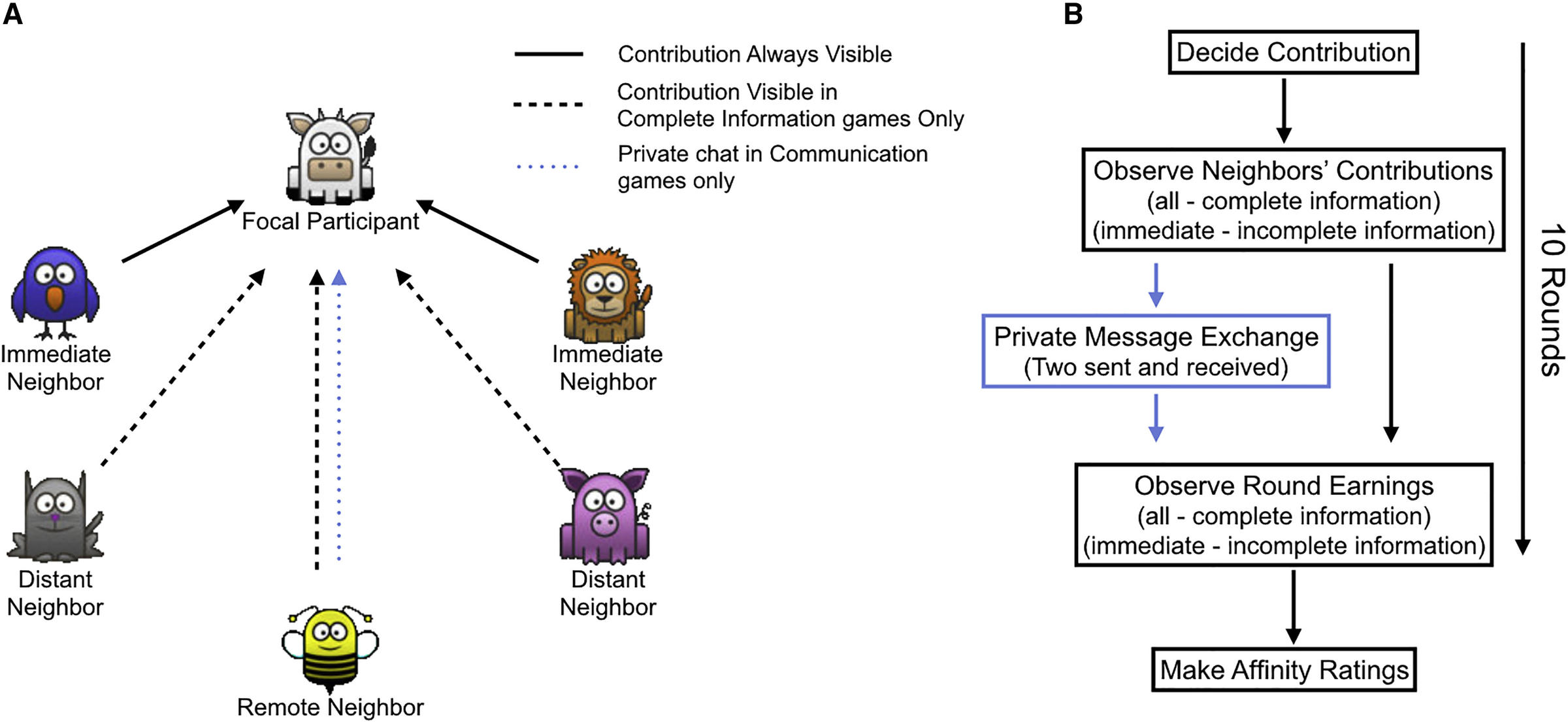 And the other factor that we manipulated was, whether you could exchange private conversations and messages with another person in the game. And the idea here is to try to create a scenario a bit like the real world, where you're part of a small community, and you're affected by the actions of everybody in your community. But you can only observe firsthand some of those people.