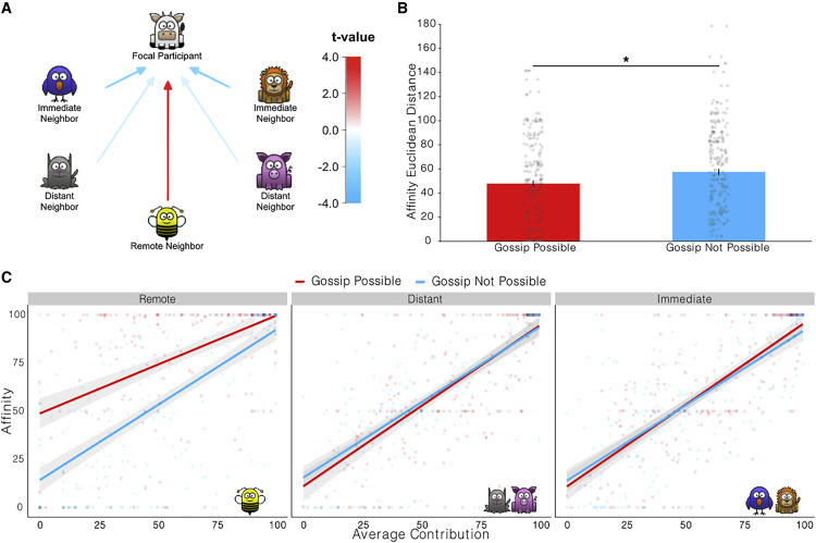 The other piece that we find is that the people who are exchanging gossip with each other come to trust each other more. And not only that, their views and impressions of other people that they're playing with in the game tend to become more similar over time. What we sort of take away from this is that, gossip is a means by which we can not only learn about other people, but the act of doing so brings us closer together, and ultimately, sort of shapes the way that we tend to see other people, and increases the similarity with which we we tend to see other people.